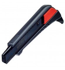 Cutter professionnel doté d’un guide en acier inox 1 mm anticorrosion, d’une lame sécable 18 mm avec crochet multifonction servant à l’ouverture et au verrouillage automatique.